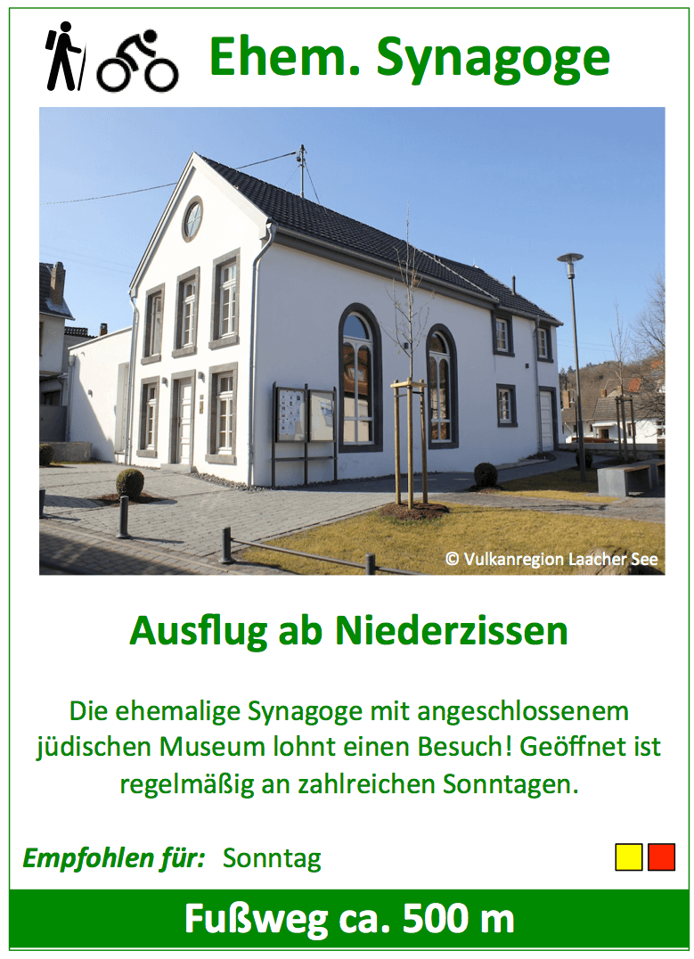 So manches attraktive Ziel liegt nicht weit von unserem Schienenstrang entfernt. Andere lassen sich perfekt mit einer kurzen Wanderung verbinden. Mit den Freizeitbussen erreichen Sie vom Bahnhof Engeln schließlich auch spannende Highlights im etwas weiteren Umfeld - stets mit Anschluss zum "Vulkan-Expreß", versteht sich. Nicht jedes Ziel eignet sich an all unseren Fahrtagen gleich gut für einen Besuch. Die jeweilige Empfehlung kennzeichnet, wann das Ziel besonders gut zu unserem Fahrplan passt. Weitere Details öffnen sich bei einem Klick auf das jeweilige Ziel!